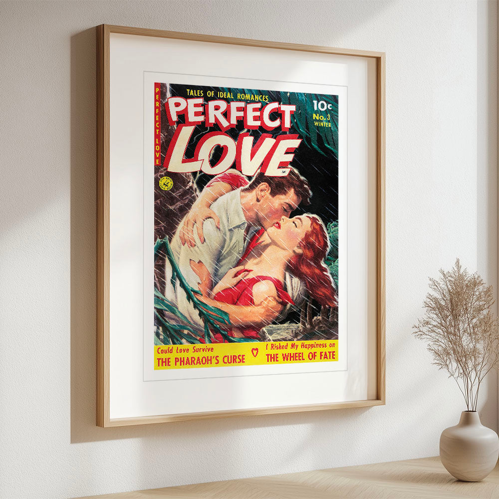 This winter 1951 issue of Perfect Love encapsulates the dramatic allure of post-war romance comics, a genre that thrived in the Golden Age. The expertly painted cover captures the emotional intensity of young love amidst perilous surroundings, reflecting the era's fascination with melodrama and escapism.