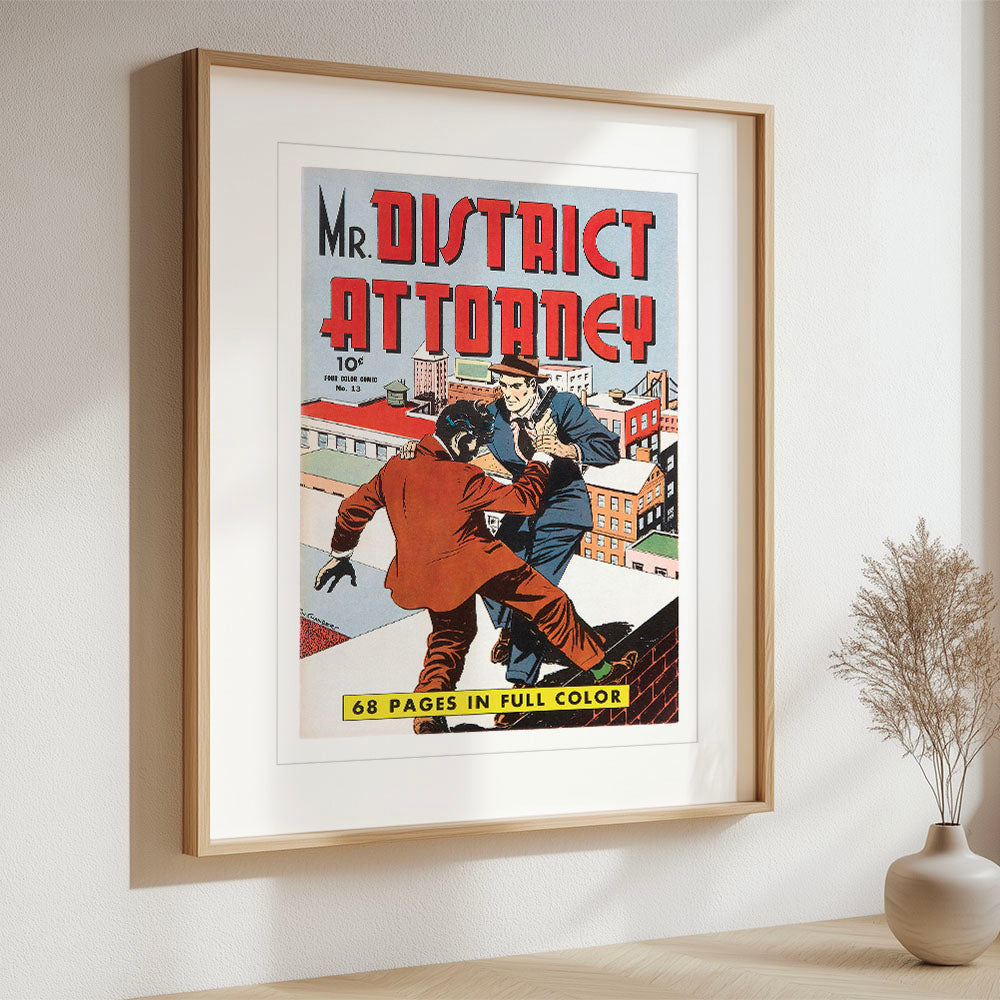 Mr. District Attorney, a culturally significant figure rooted in radio drama, symbolizes integrity and justice amidst wartime uncertainty. The lettering's strong serif font and the vivid "68 pages in full color" banner underscore Dell Comics' commitment to accessible entertainment during the Great Depression's lingering aftermath. A vivid snapshot of mid-century pulp storytelling.