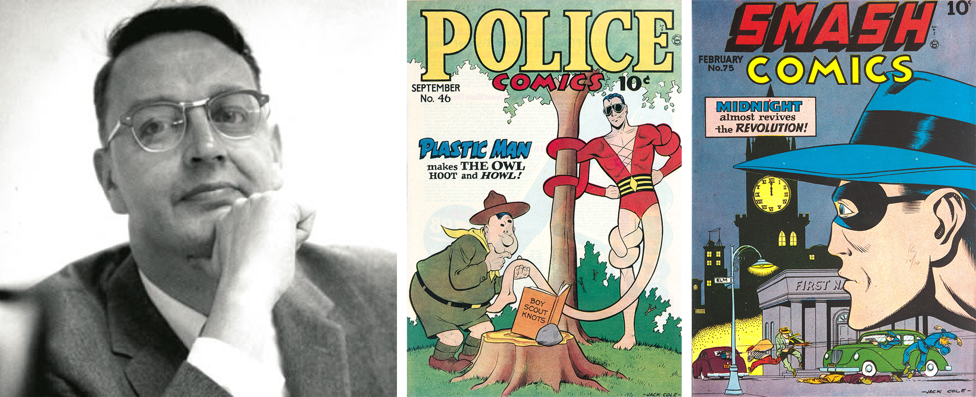This striking 1948 cover by Golden Age artist Jack Cole exemplifies the gritty allure of pre-Code crime comics. The vivid composition dramatizes the violent downfall of Bennie Dickson, a real-life outlaw whose 1939 death at the hands of the FBI is immortalized here. The bold "RAT" emblazoned across his chest underscores his betrayal and demise, while Stella Mae, his partner in crime, fiercely resists capture with a pistol in hand.