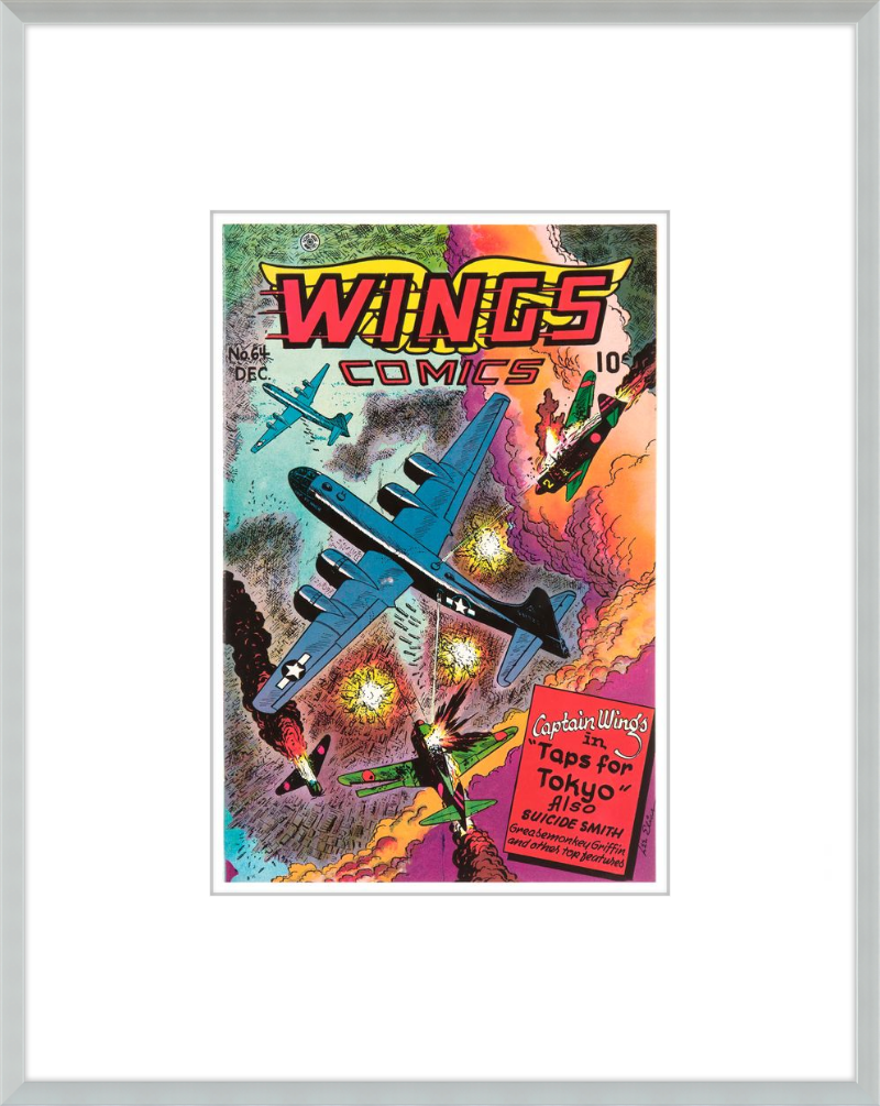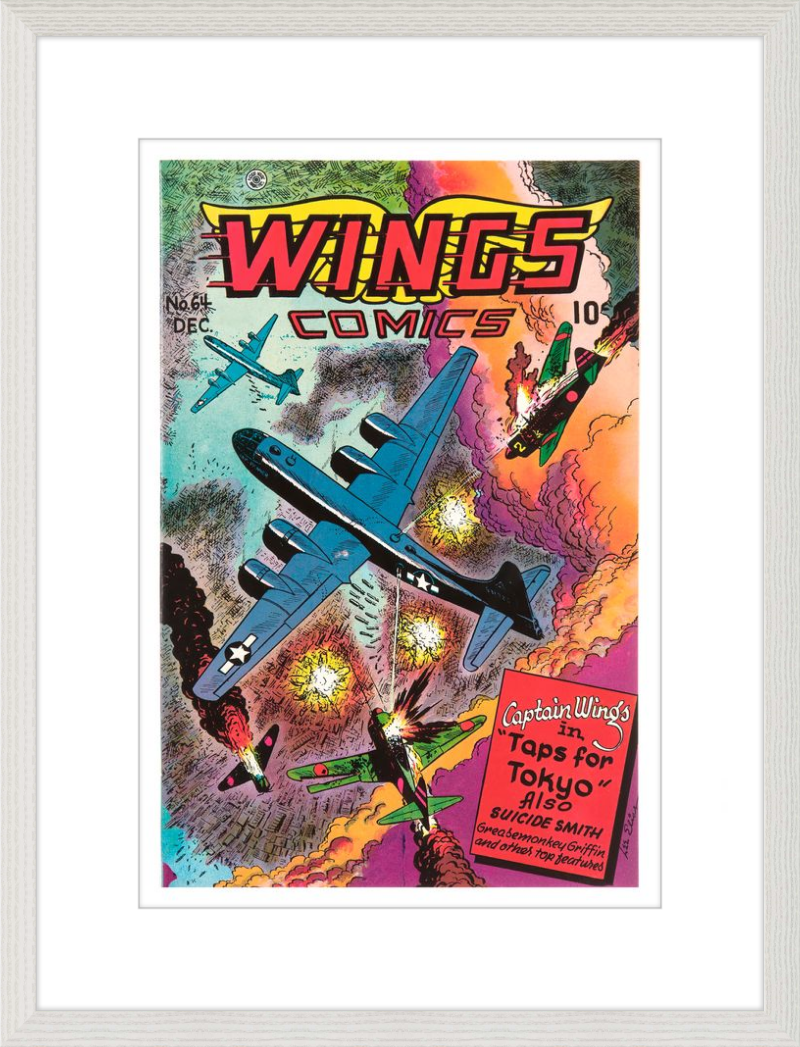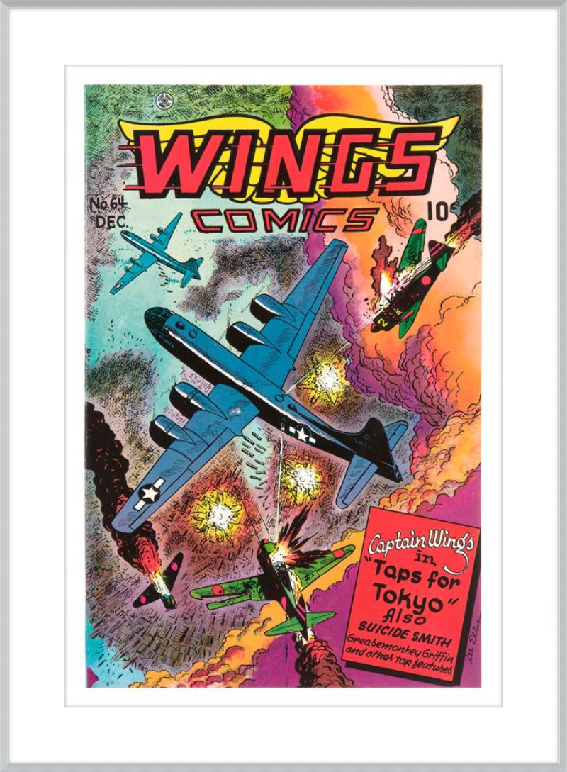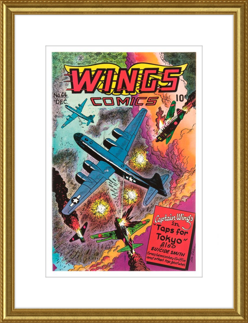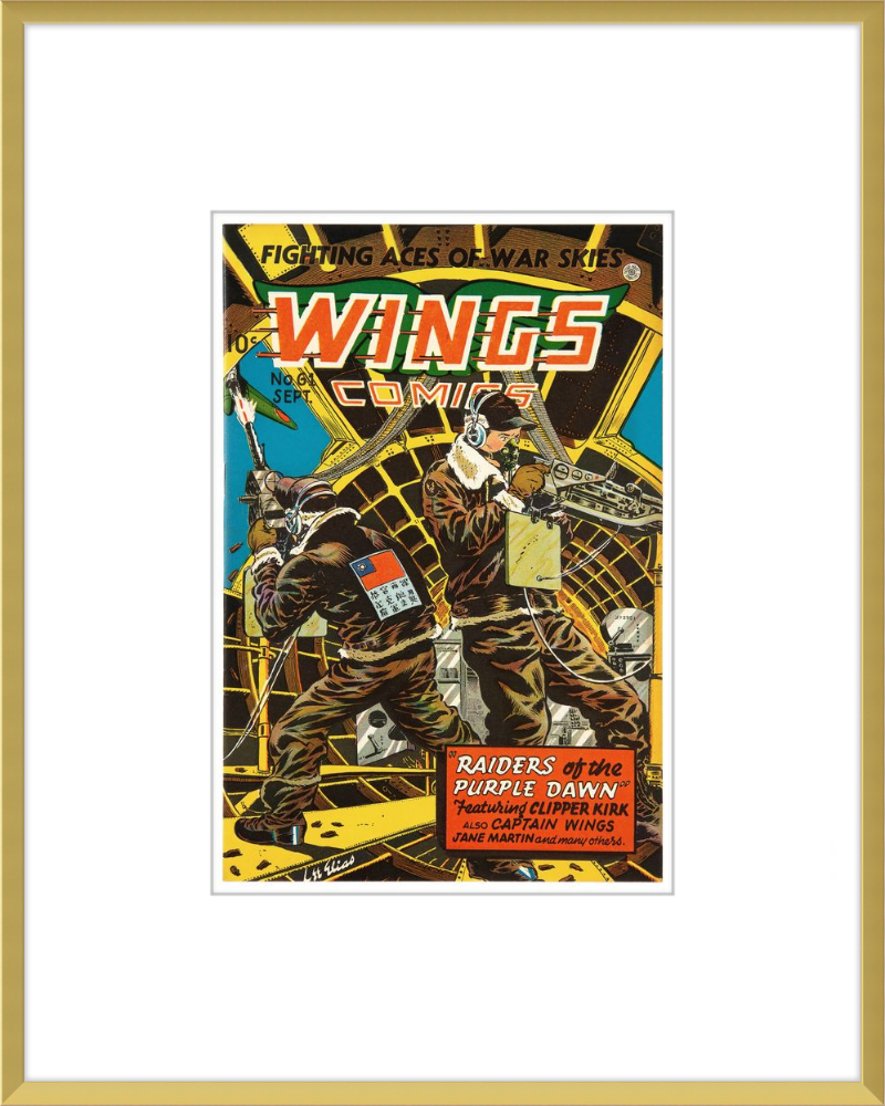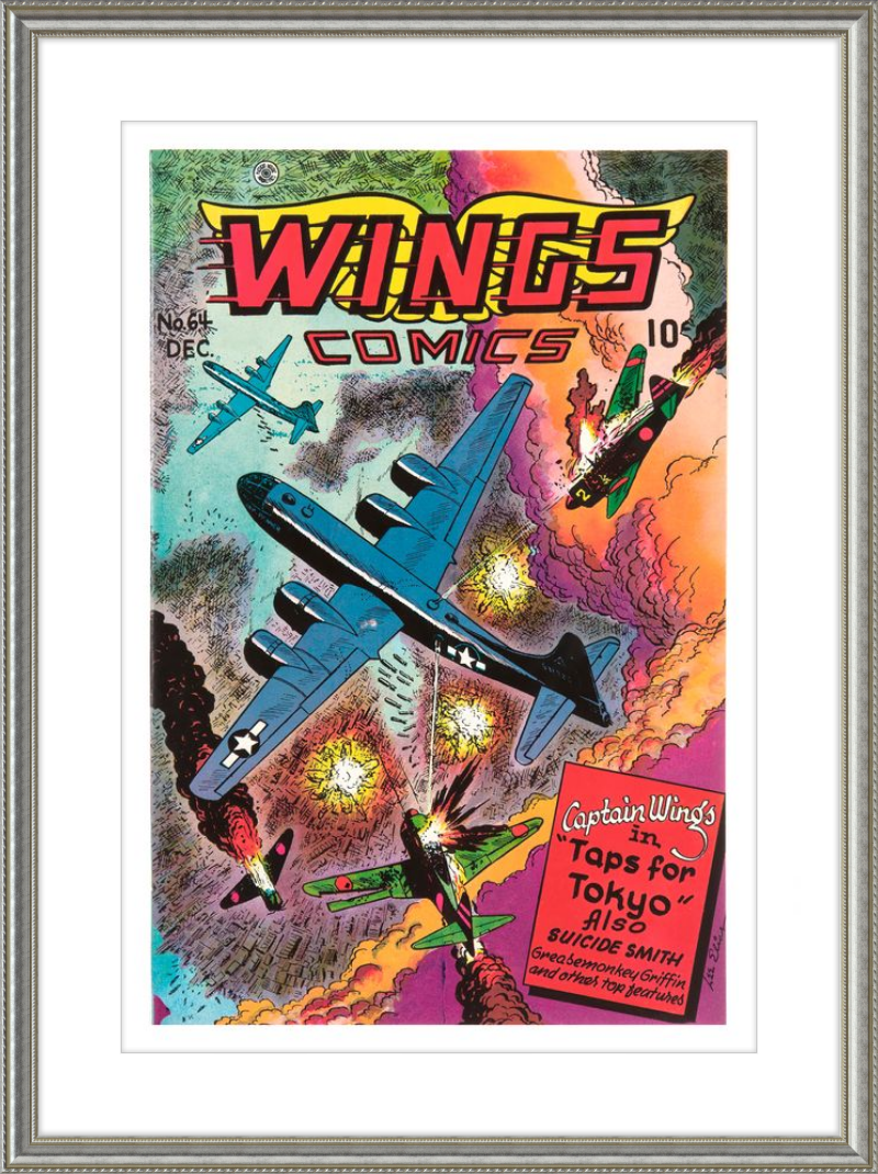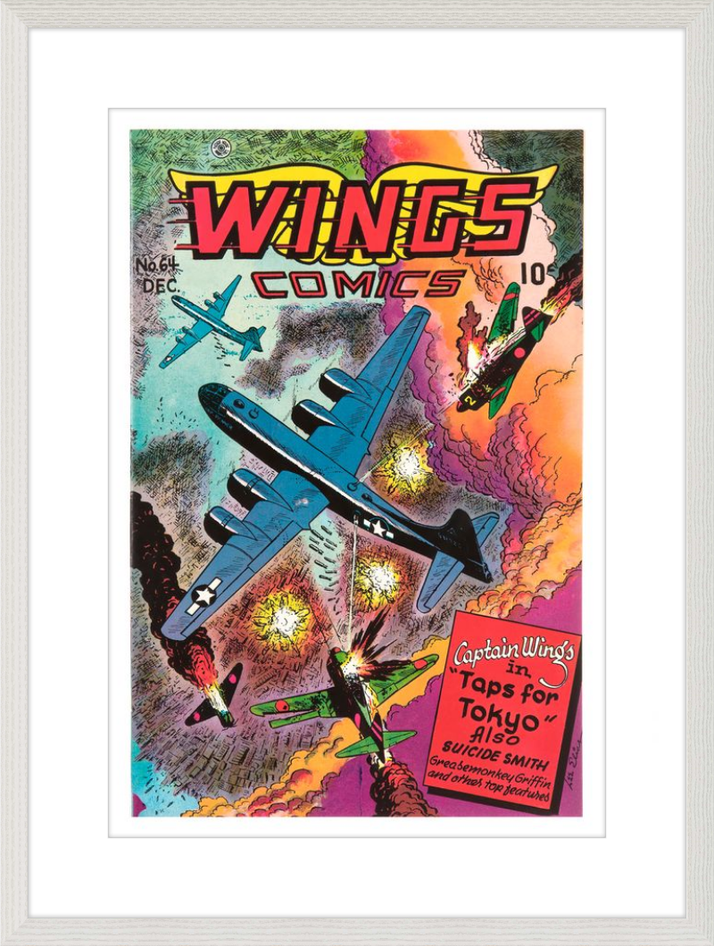 The bold colors and dramatic composition reflect the era's fascination with aviation warfare, a theme central to Fiction House’s wartime publications. Captain Wings, the heroic aviator, embodies the patriotic spirit of mid-20th-century America, resonating with readers during a time of global conflict. The cover’s meticulous detail and action-packed imagery underscore the Golden Age comic tradition of blending entertainment with wartime propaganda.