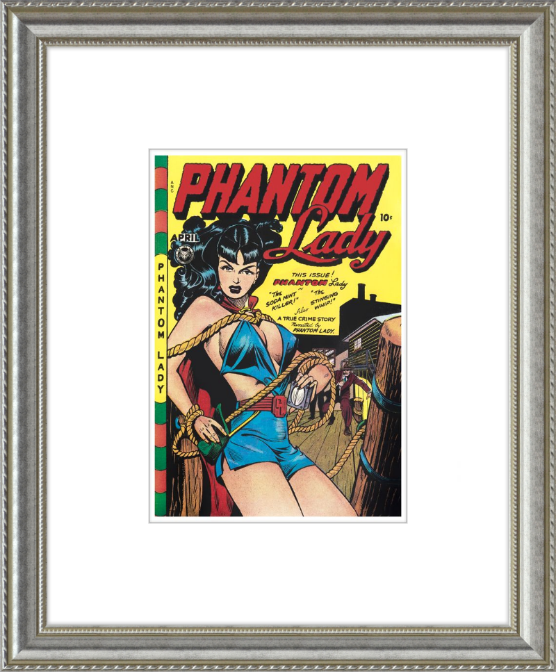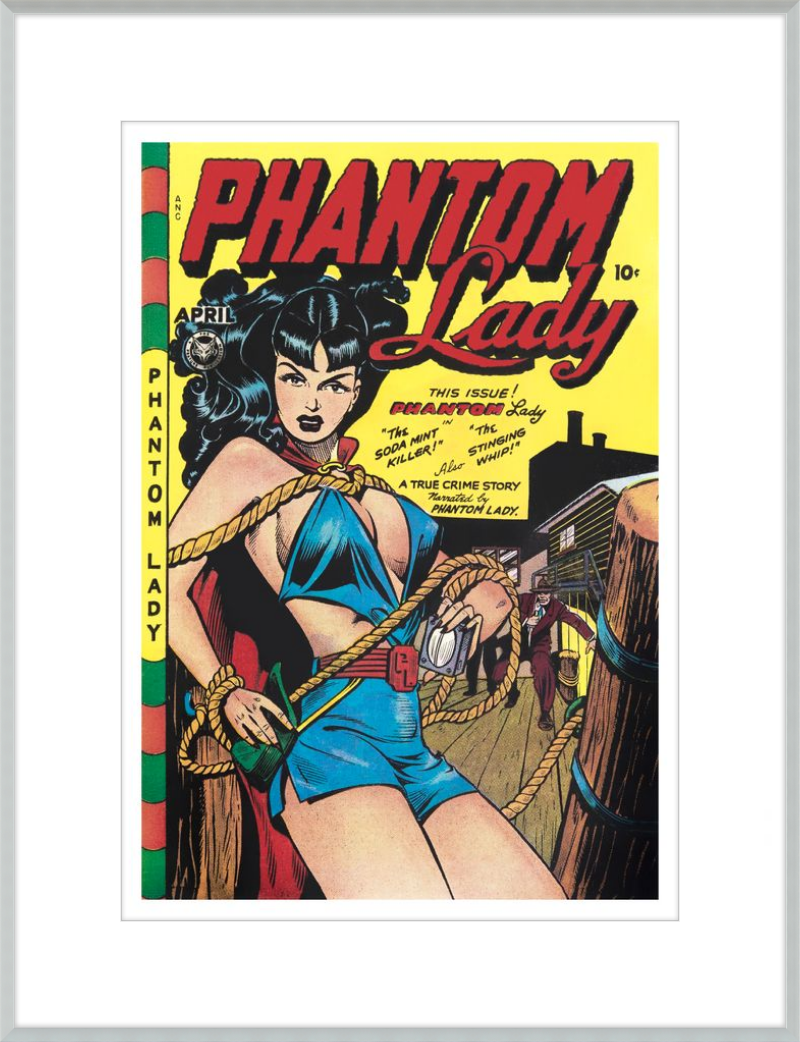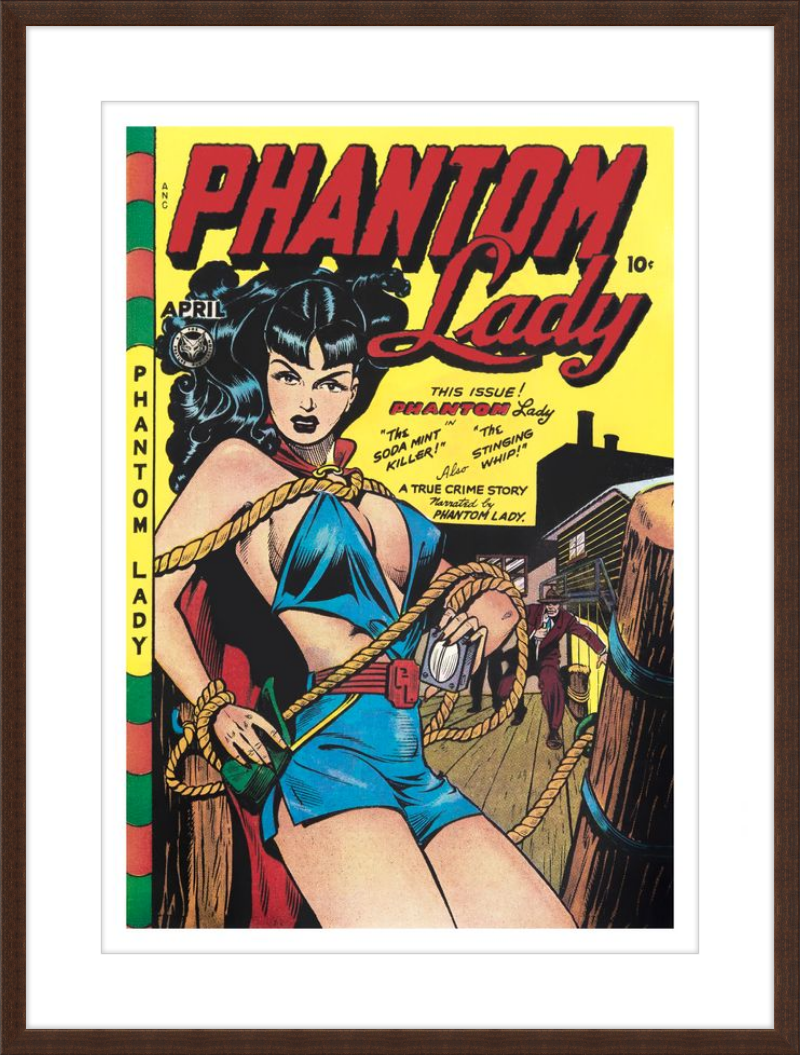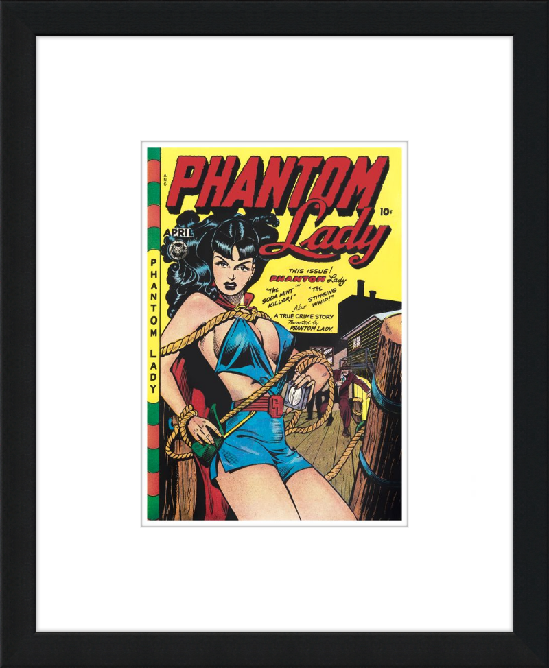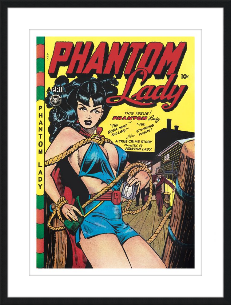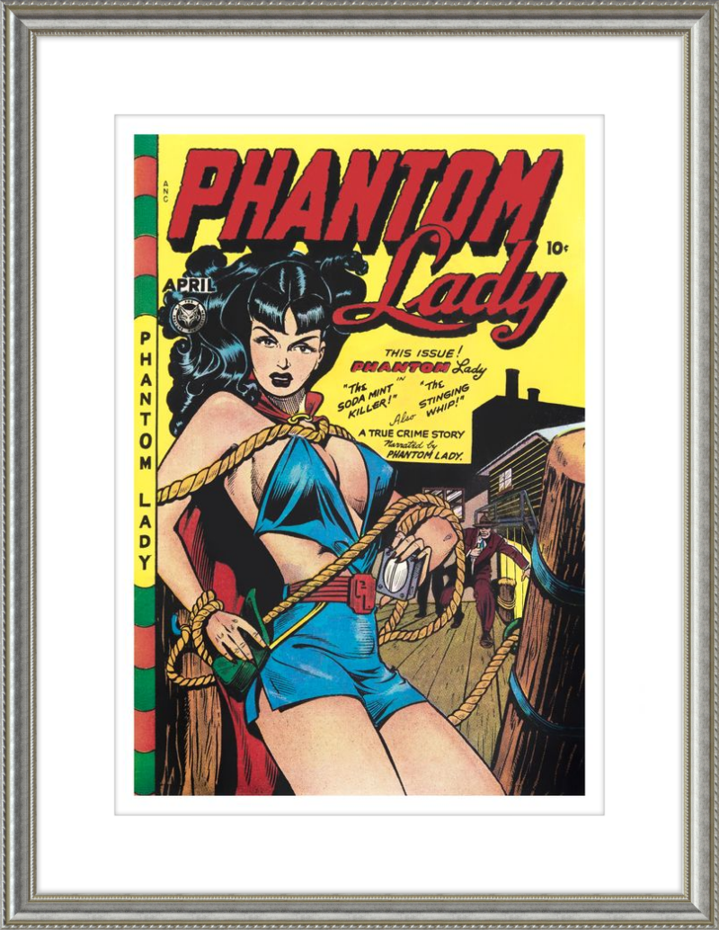 As a cultural figure, Phantom Lady challenged conventions, wielding her black light projector to fight crime while embodying the controversial "Good Girl Art" style. This cover gained notoriety through Fredric Wertham’s Seduction of the Innocent, shaping comic book history.