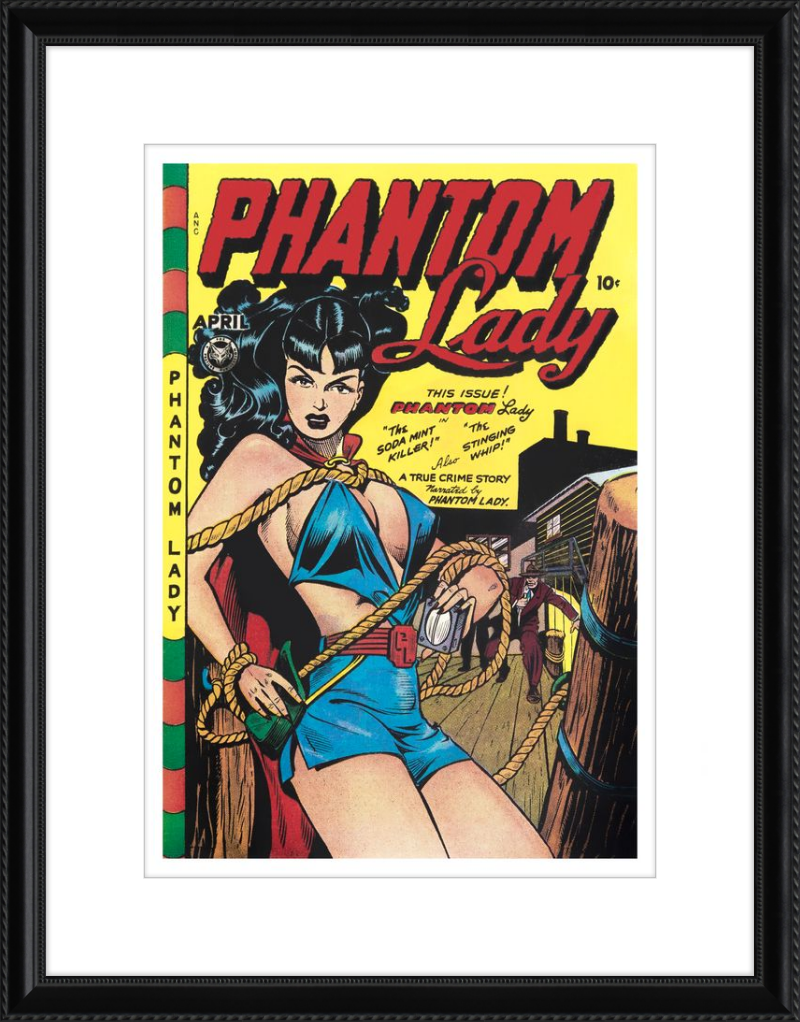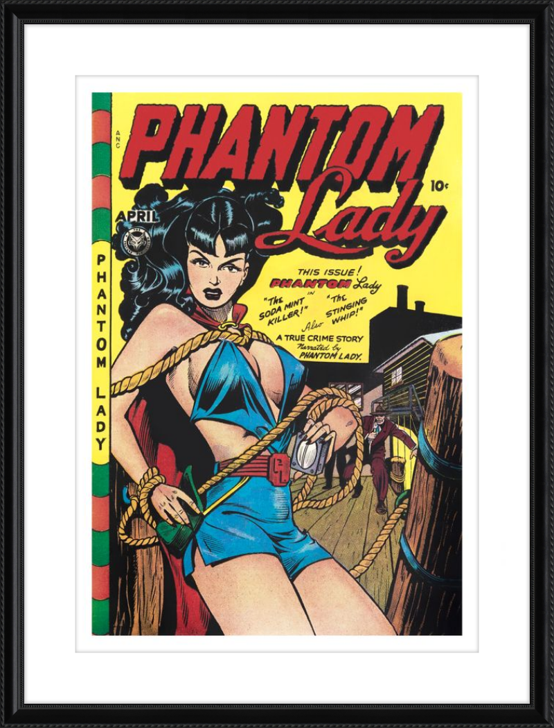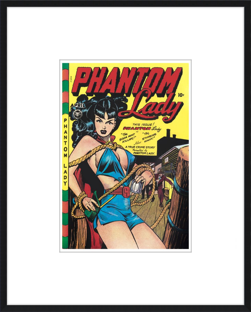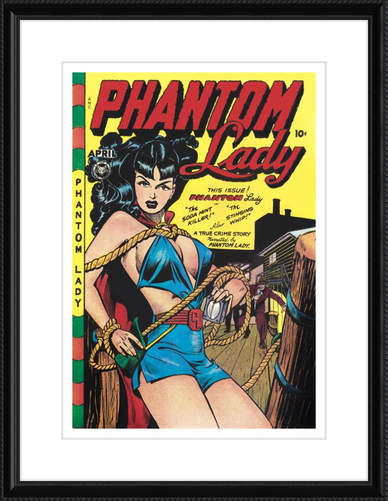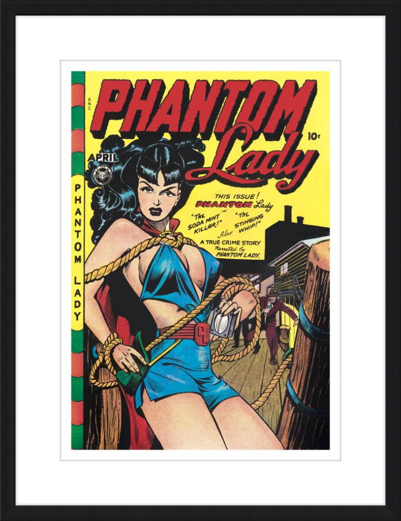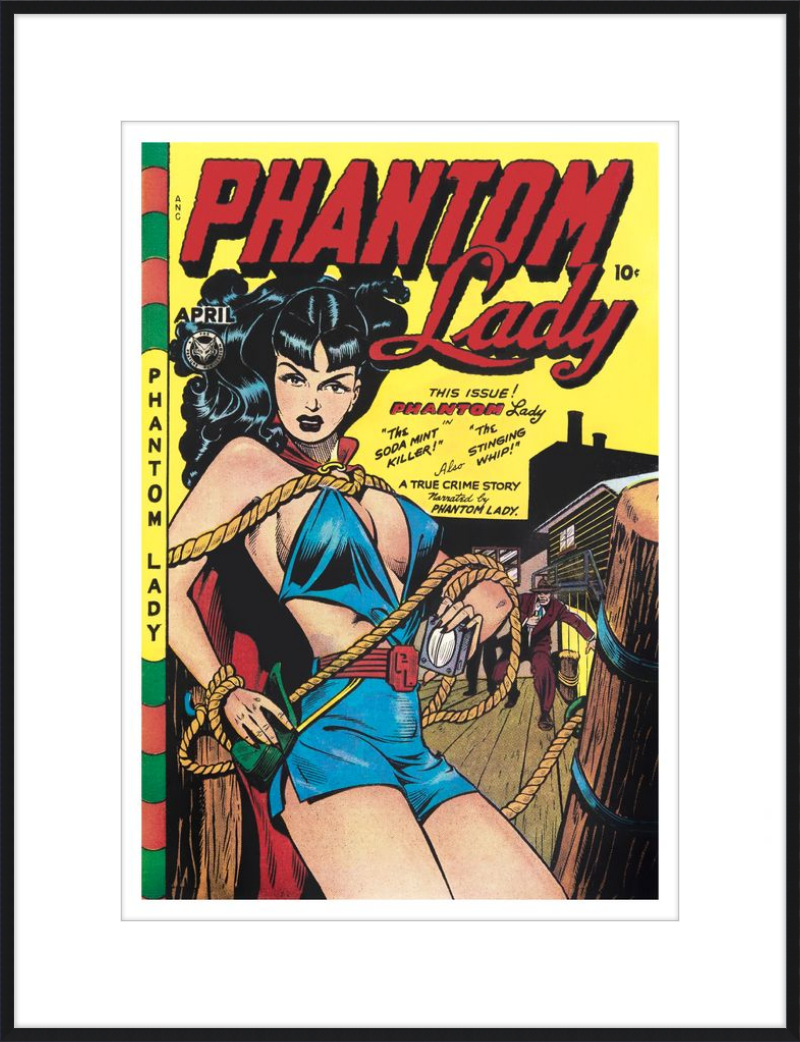 As a cultural figure, Phantom Lady challenged conventions, wielding her black light projector to fight crime while embodying the controversial "Good Girl Art" style. This cover gained notoriety through Fredric Wertham’s Seduction of the Innocent, shaping comic book history.