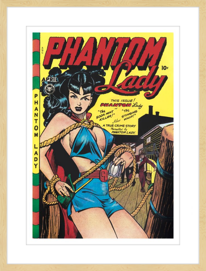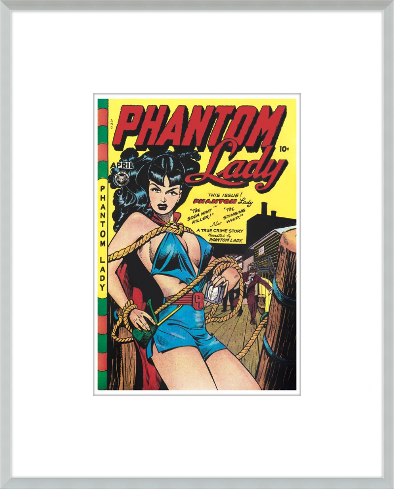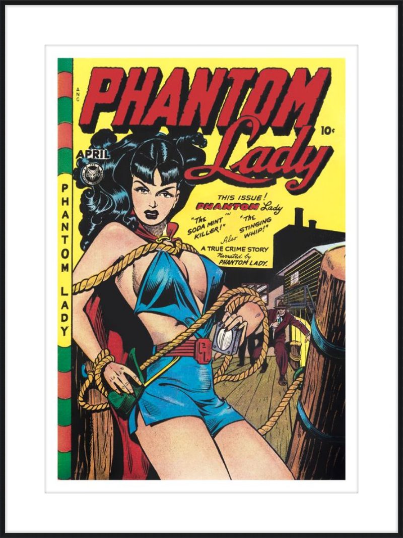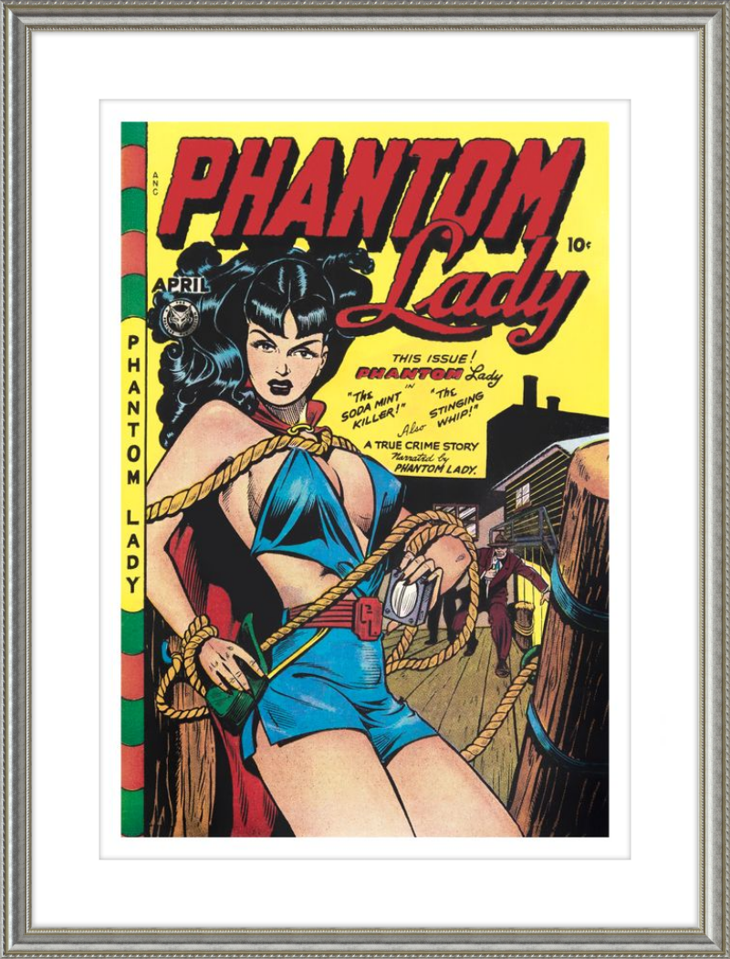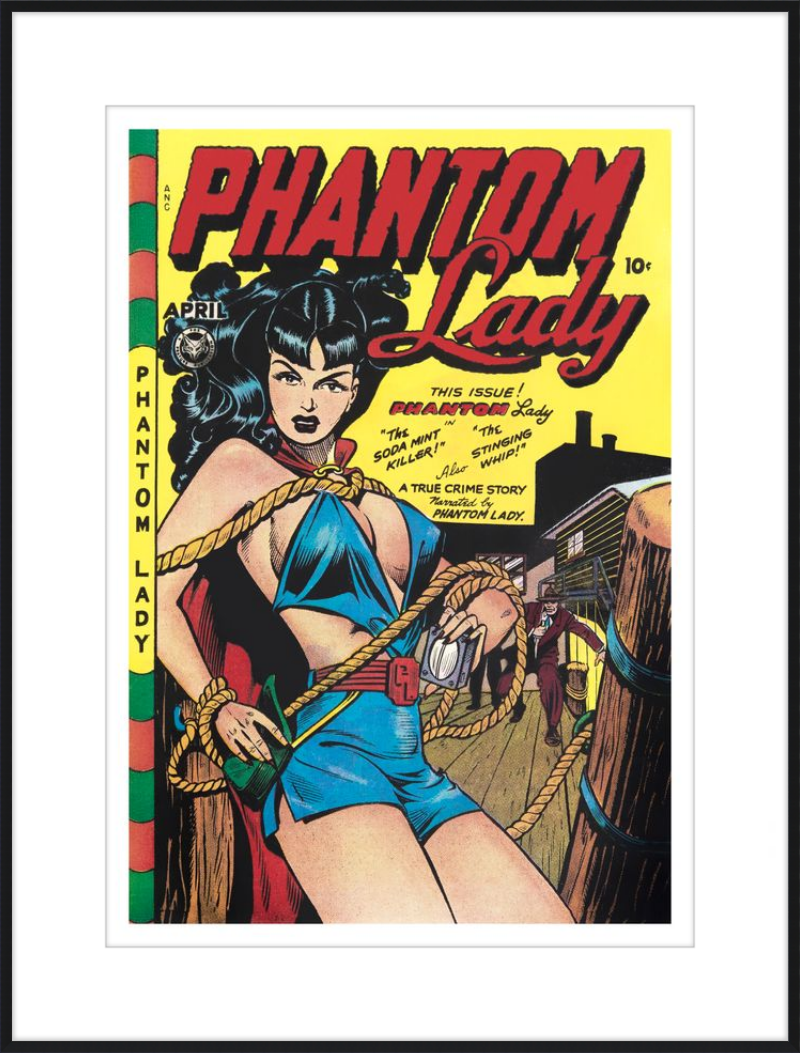 As a cultural figure, Phantom Lady challenged conventions, wielding her black light projector to fight crime while embodying the controversial "Good Girl Art" style. This cover gained notoriety through Fredric Wertham’s Seduction of the Innocent, shaping comic book history.