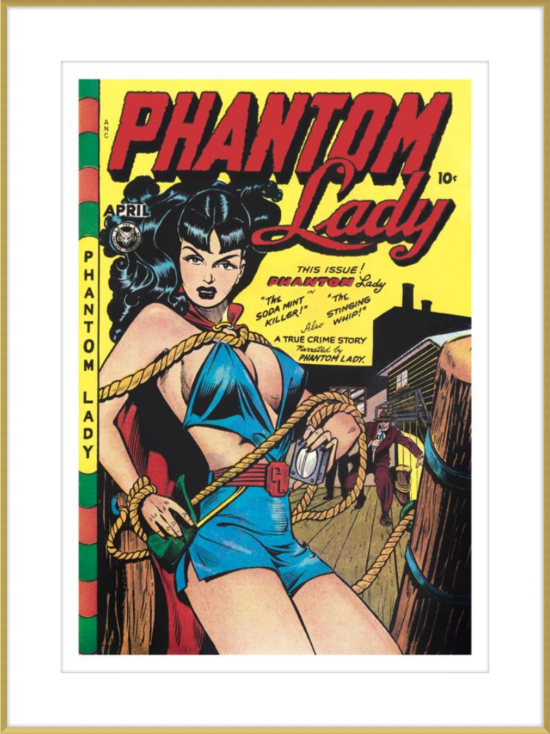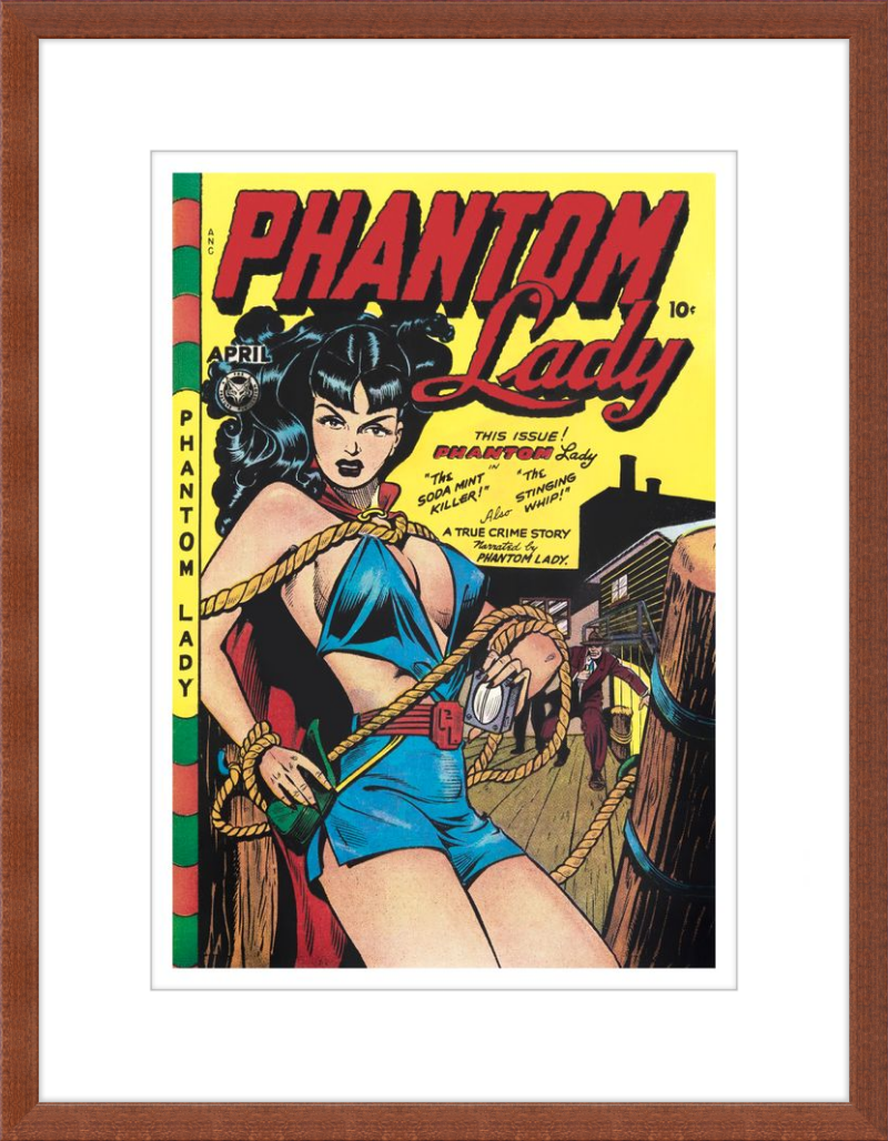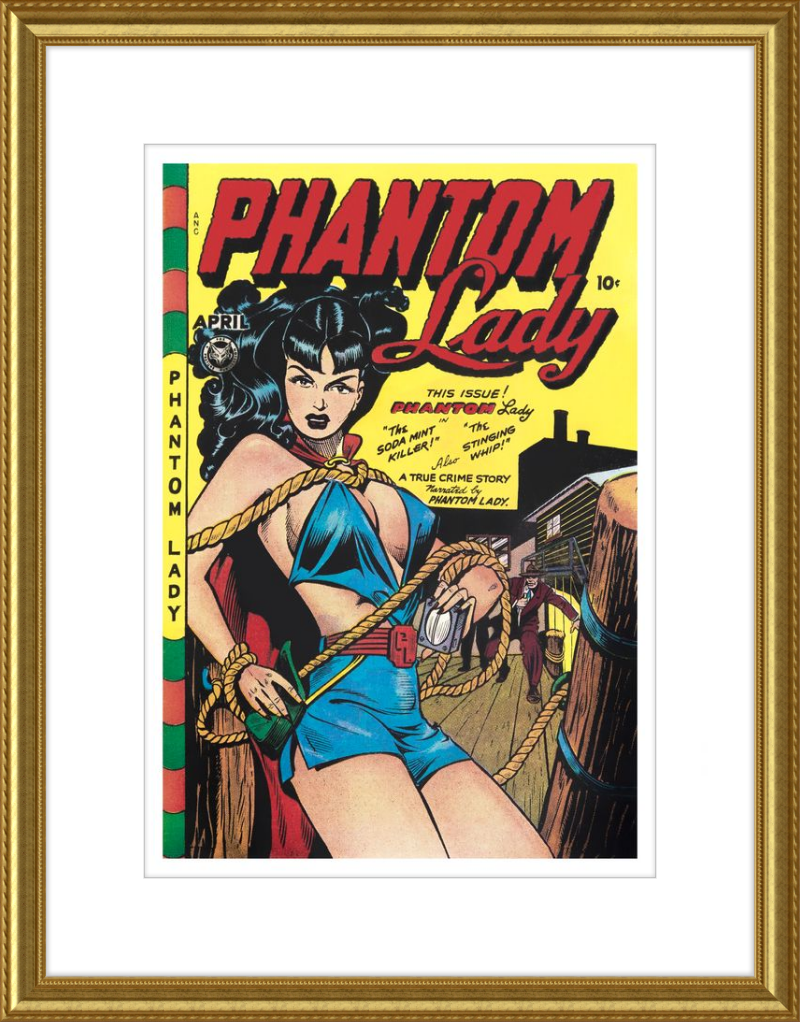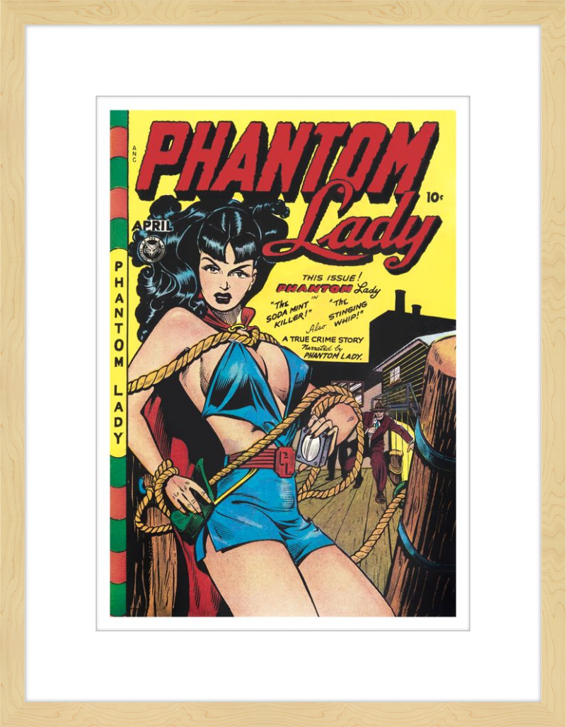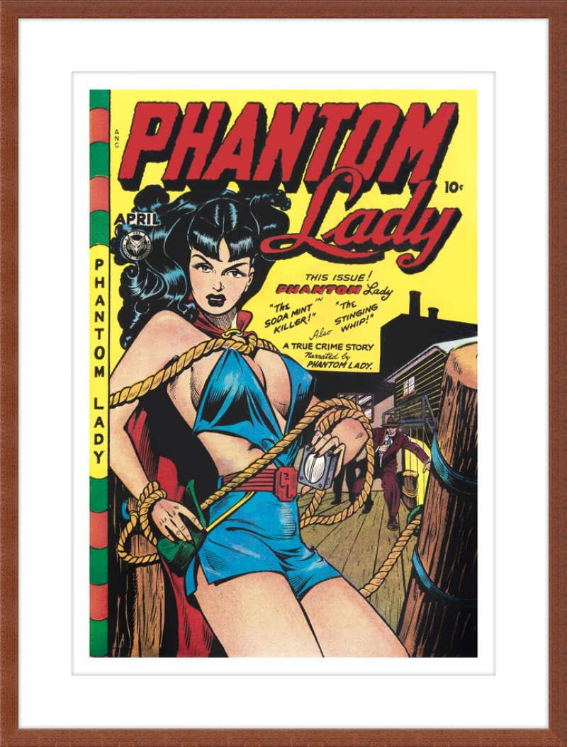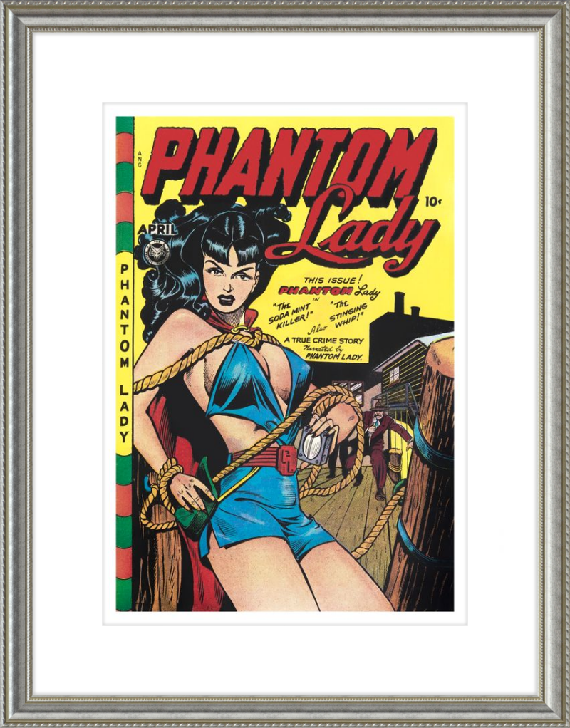 As a cultural figure, Phantom Lady challenged conventions, wielding her black light projector to fight crime while embodying the controversial "Good Girl Art" style. This cover gained notoriety through Fredric Wertham’s Seduction of the Innocent, shaping comic book history.